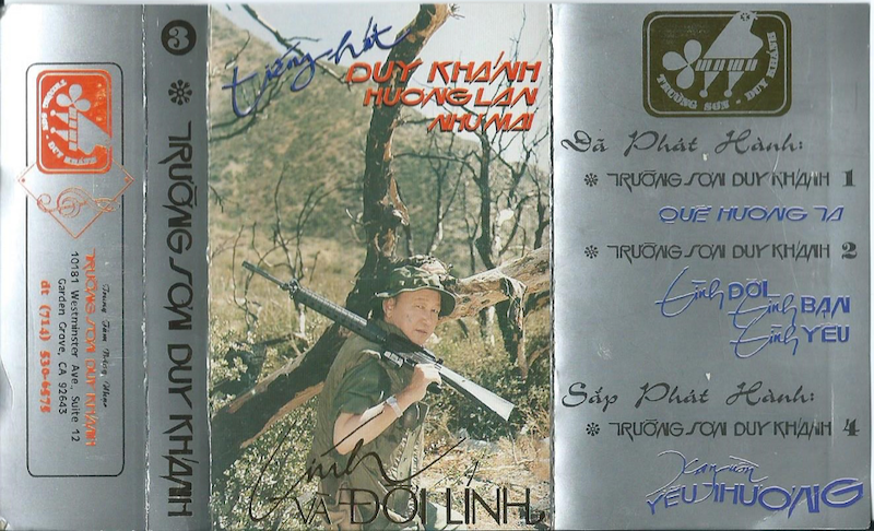 Even after the polyester-plastic-magnetic tape was tangled into a spiral mess, my father would always find a way – usually with a pencil – to untangle the tape and manually re-wheel the tape back onto the reel, to be played again as if the cassette was new. Although he was familiar with the 1.5 and second-generation singers, he continued to listen to the singers he had seen performing onstage for the soldiers, and the singers and composers he’d met when he served. The songs produced at the time were not only evocative, but he, his family, my mother, her family, his friends and comrades had lived through and experienced the turmoil that haunted those lyrics. Even as some of the singers immigrated to the United States, production and recording studios in California established a community where they became overseas singers, re-recording the same songs they had recorded during the Việt Nam War. In his book, Nothing Ever Dies: Vietnam and the Memory of War, Viet Thanh Nguyen argues, “The problem of war and memory is therefore first and foremost about how to remember the dead, who cannot speak for themselves. Their unnerving silence compels the living – tainted, perhaps, by a touch or more of survivor’s guilt – to speak for them” (4). The nostalgia of pre-1975 is maintained by the albums, marketed as a form of war memorabilia. While the intersections of narratives, culture, memories, the dis/remembered, and demographics are different between the Western memory industry and the Vietnamese memory industry, nostalgia was and will always remain a marketing asset for several industries. But for Vietnamese Veterans, composers and singers – dead and alive – are only un-silenced by refugees who continue to listen, consume, and inherit their stories.