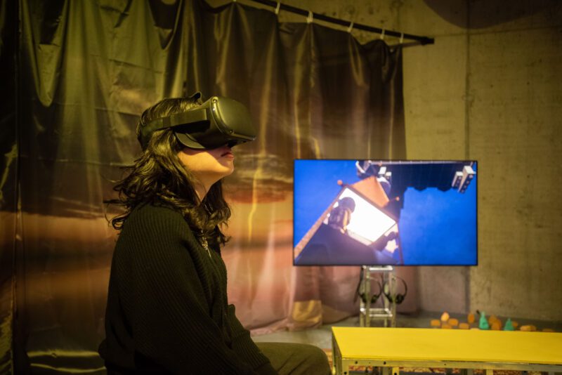 In “Acceptance,” the main installation “Bulle Personnelle / personal bubble” is a VR experience bathed in yellow lighting that revisits my childhood memories, focusing on my family’s former prayer room in Paris, now a virtual space set against a sunset landscape. Crafted by 3D designer Petter Schölander with my oral storytelling, it explores the impermanence of memories and emotions, embodying Buddhist principles of life’s transitory nature. Objects in the VR signify six distinct family stories, complemented by a soundtrack by Ariel Karsh that reinterprets Beethoven’s Sonata Pathétique, reflecting on nostalgia and the fleeting moments of existence. This virtual exhibition blends personal recollections with the broader, universal concept of impermanence, encouraging deep reflection on the ephemeral quality of human experiences.